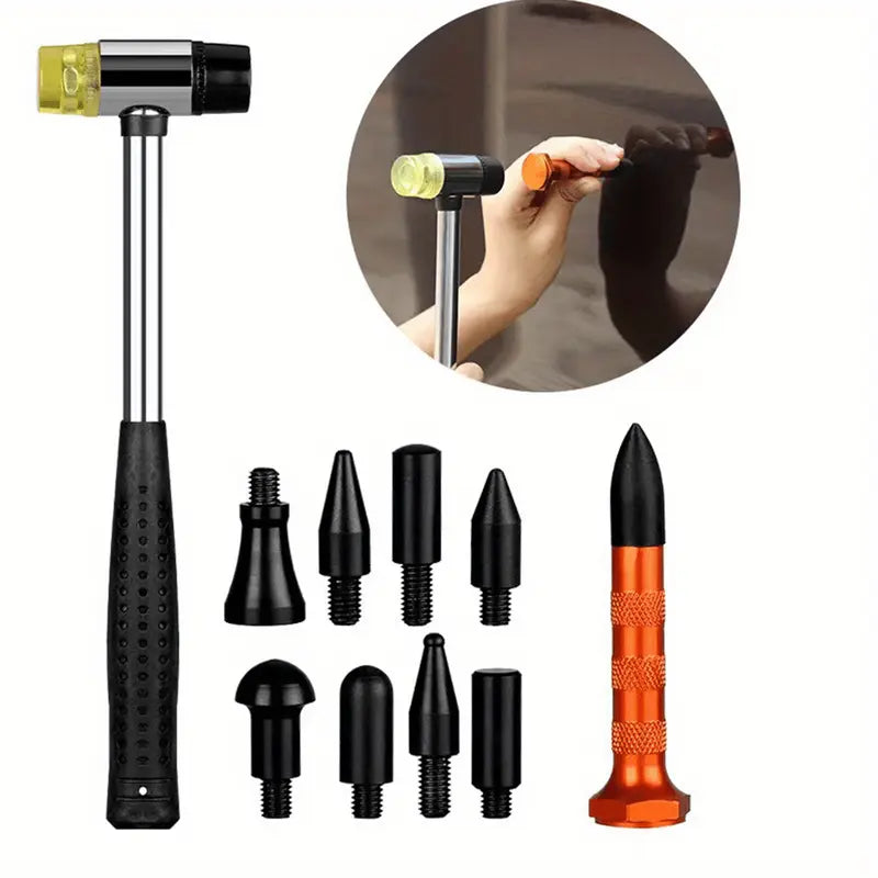 - divers outils à main tels que : 2 ventouses manuelles, marteau avec pointeau et embouts pour traiter les impacts de grêle, chiffon, flacon, 2 spatules, bâtons de colle silicone, etc.